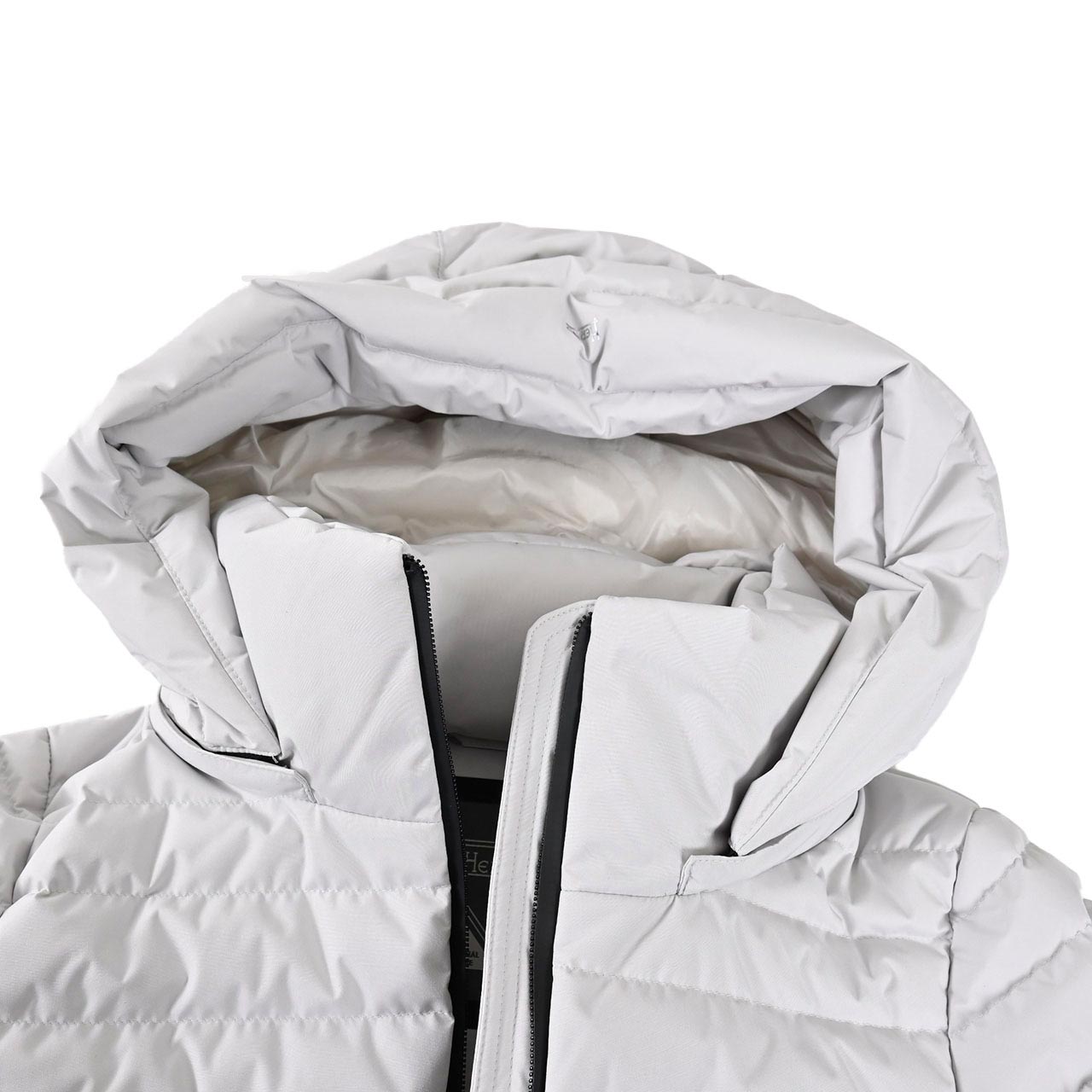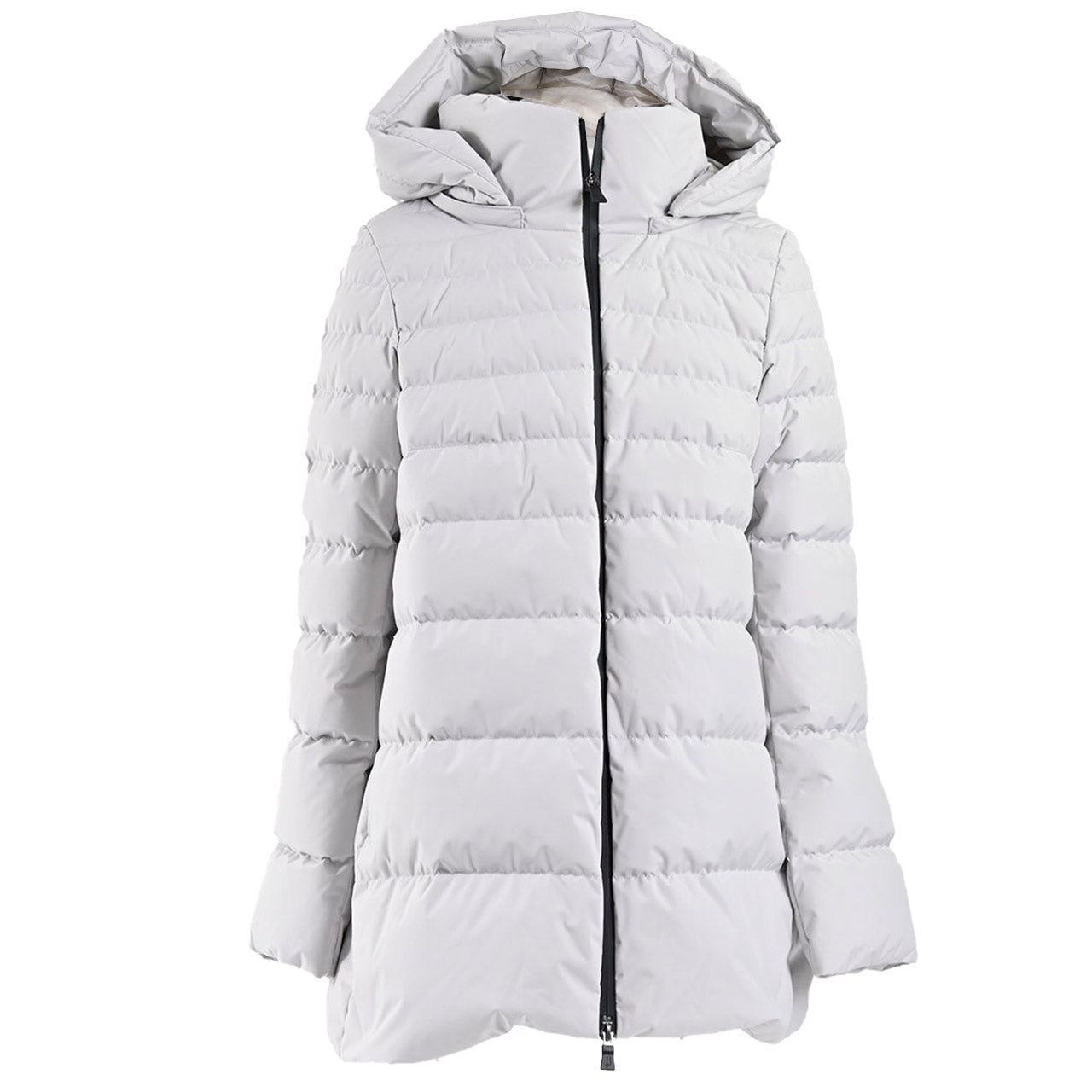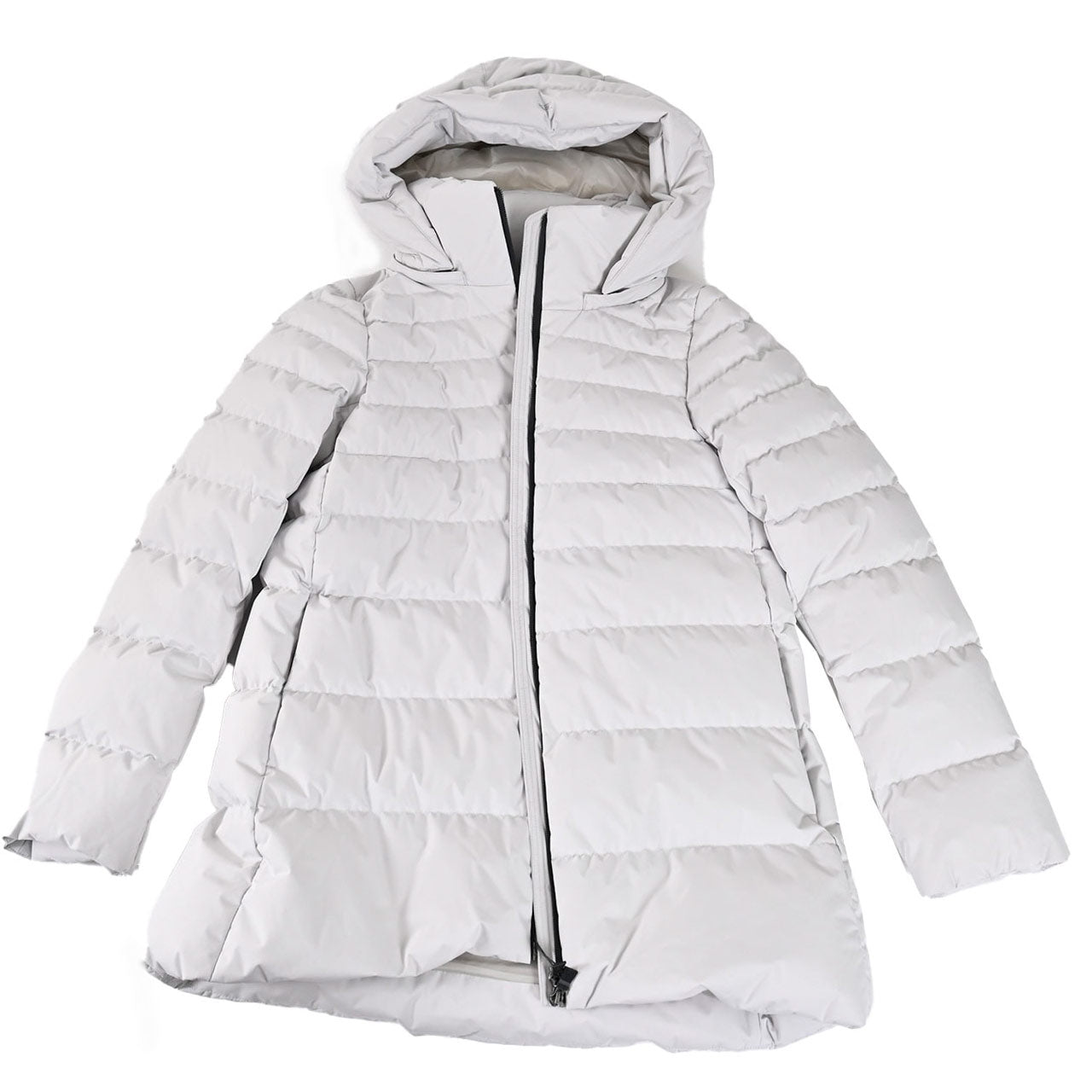 HERNO のロングスリーブダウンコートは、Aラインの美しいシルエットと取り外し可能なフード付き仕様。ジップ開閉とウエルトポケットで機能性も十分。高品質なグースダウンを封入し、暖かさと軽やかさを両立させた洗練のアウターです。